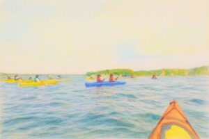 穏やかな湾で親子カヤック。