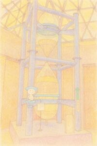 1年かけて砂が落ちる大きな砂時計を、親子で見上げてみたい。